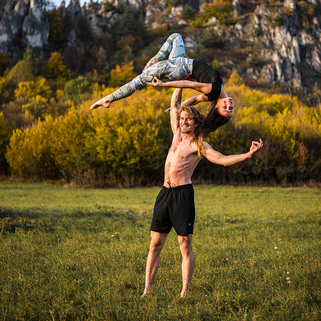 Katka a Maťo majú s acroyogovou inštruktorskou praxou bohaté skúsenosti. TT AcroYoga International si boli robiť v Mexiku. Venujú sa L-basu, aj standingu, majú radi acrodance prvky ale aj popky, icariany a objavujú aj svet whipiek. Z Acra Srdcom srší harmónia, chill a roky spoločnej praxe. Ako správny acroyogis majú záľubu aj v terapeutickom lietaní a thajskej masáži. Pôsobia a budujú komunitu v Banskej Bystrici a venujú sa aj acroyoge detí a rodičov s deťmi.