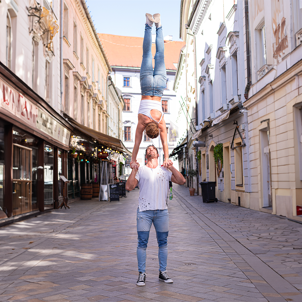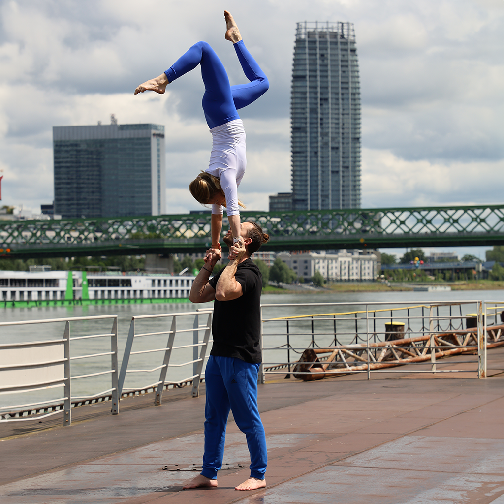 Sme amatérska akrobatická dvojica. Acro Yoga je našim spoločným koníčkom od roku 2017. Odvtedy pôsobíme pod názvom „Acro Duodávka“. Robíme lekcie, kurzy a workshopy Acro Yogy. Pre firmy ponúkame originálne vystúpenia partnerskej akrobacie. Taktiež organizujeme interaktívne teambuildingy a program na podujatia pre deti.
